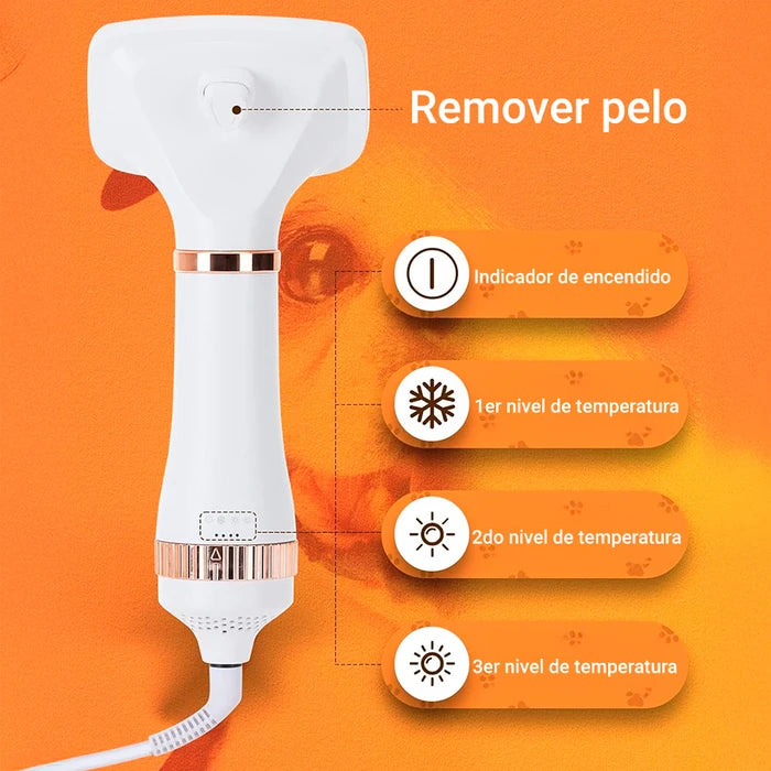 Secado durante el cuidado: nuestro secador de pelo para mascotas se puede utilizar para secar a tu mascota peluda después de su ducha, o un secado rápido después de un paseo lluvioso. Durante el secado, también puedes cepillar la piel y la capa inferior de tu bebé peludo, más cómodo y ahorra tiempo.